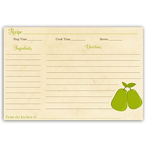 Recipe Cards, Pears, Fruit, Country, Bridal Shower, Wedding, Housewarming, Gift, Recipe Exchange, Double Sided with Lines, Size 4 x 6, 24 Printed Cards, Perfect Pair