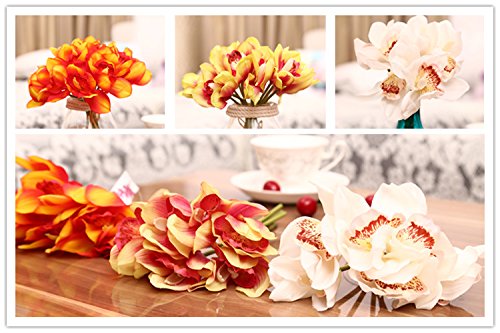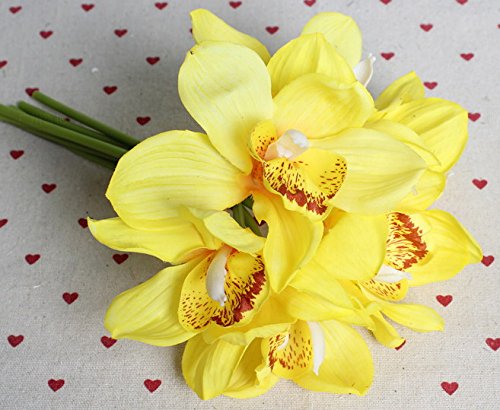 -. Title : 12 PCS High Quaulity Latex Real Touch Cymbidium Orchid Artificial Flower Bouquet for Wedding Holiday Bridal Bouquet Home Party Decor bridesmaid