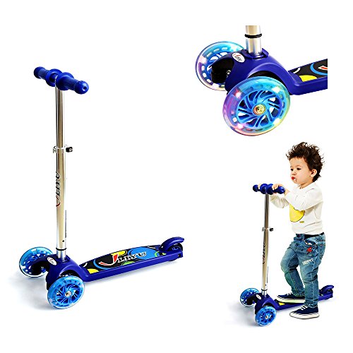 -. Title : LIYU 3 Wheels Mini Kick Scooter for Kids - Adjustable Height / Wide Deck / LED Flashing Wheels / Lean to Steer for 2-6 years 77lbs Kids