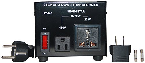 seven star st 300 Step Up/Down transformer converts 220-240 volts down to 110-120 Volts or 110-120 volts up to 220-240 volts. 300 wattsFeature