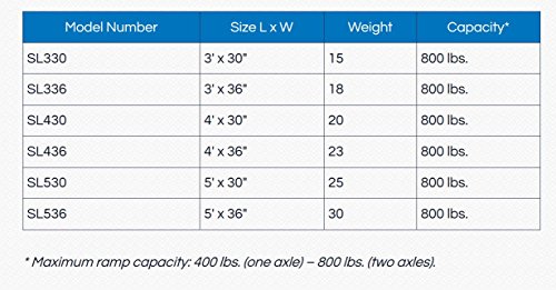 ReleaseDate : 2005-05-17 Studio : Prairie View Industries Publisher : Prairie View Industries Binding : Health and Beauty Product Description The solid ramp is an excellent choice when a more permanent ramp is desired. No Assembly required. Its one piece design makes it ideal for wheelchairs and scooters with various wheel configurations. This ramps is constructed of aluminum and has a slip resistant surface. Comes complete with a safety video and steel security pins. 0