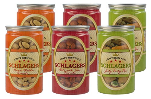 Schlagers Flavored Nuts - Double-Trio Variety Set of Bacon Cheddar Peanuts, Chili Lime Peanuts & Party Mix 37.6oz (Pack of 6)