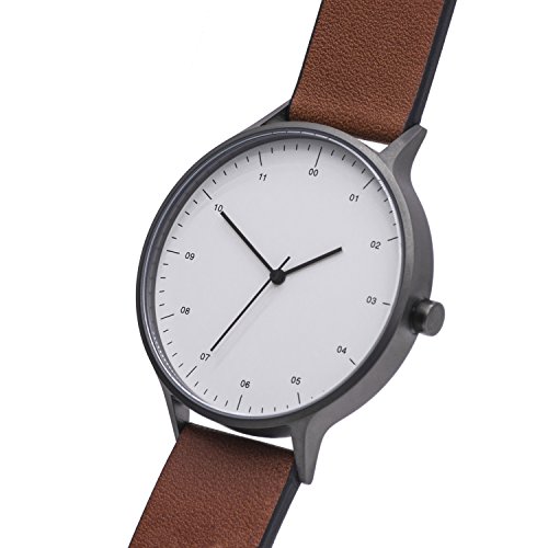 Round watch with gunmetal gray tone stainless steel case featuring white dial