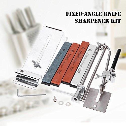 This upgraded fixed-angle knife sharpener with a sucker can be fixed stably to sharpen knives. It is supplied with four high-quality stones. It is suitable for different knives.