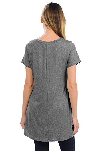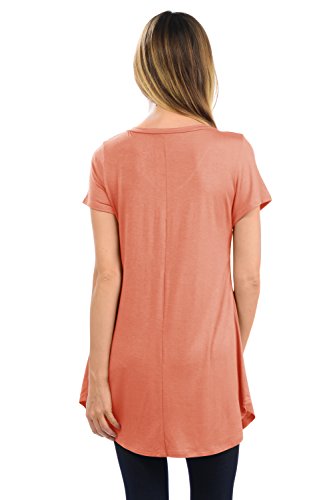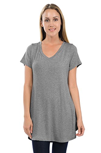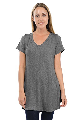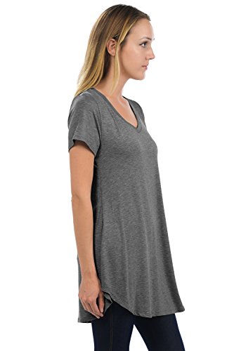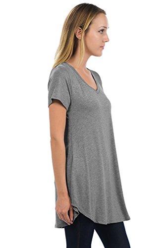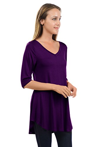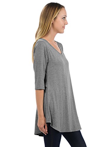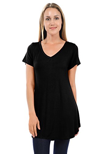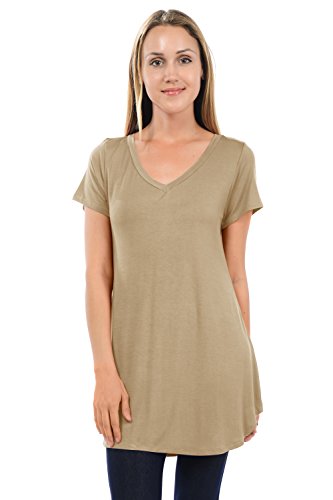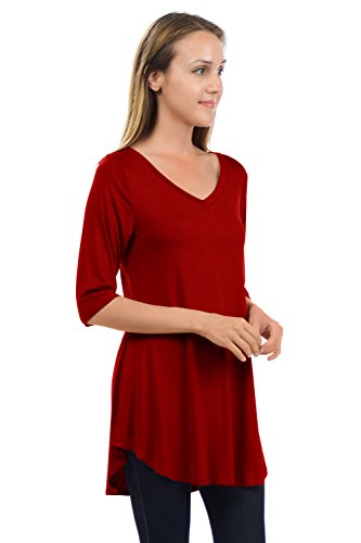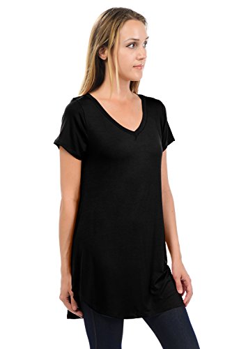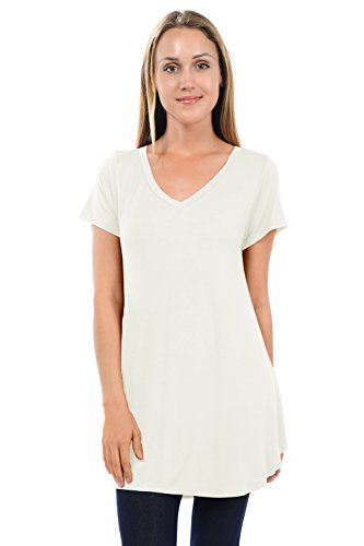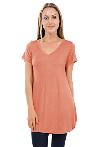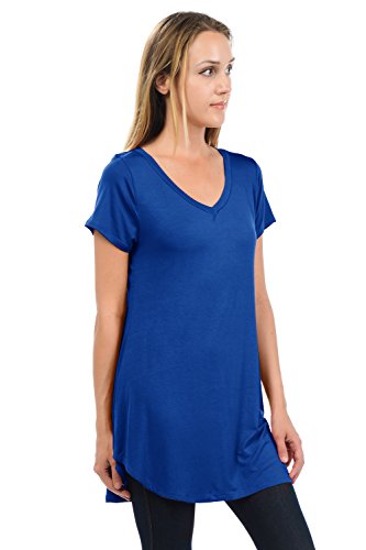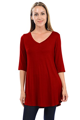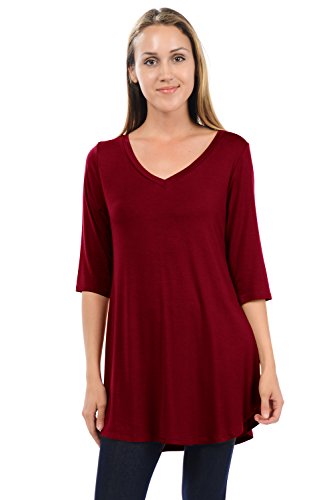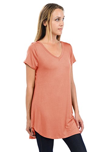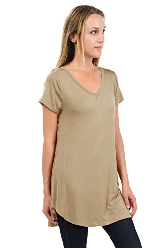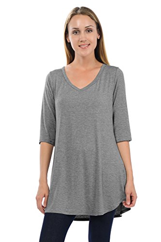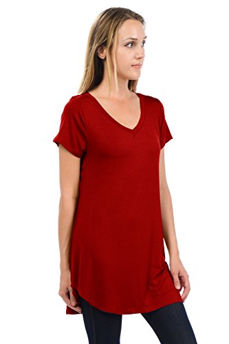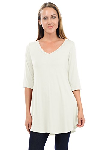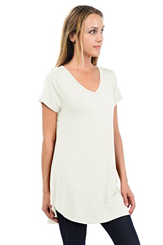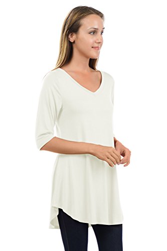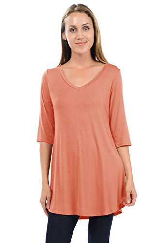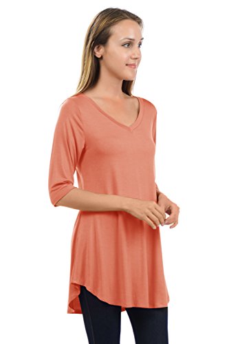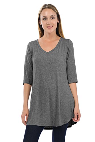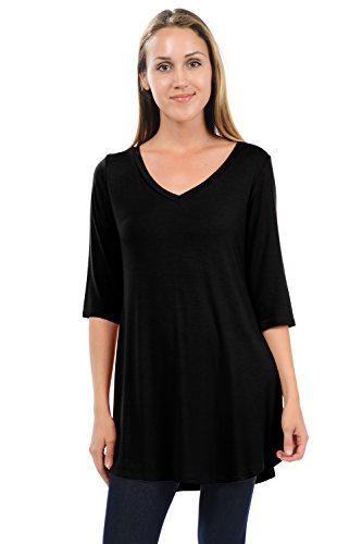 | (VIV Collection)/Women/Shorts/DIRECT FROM USA/ViV Collection RAYON MODAL Solid V-Neck Tunic Top w/ s traight Handkerchief Hem |