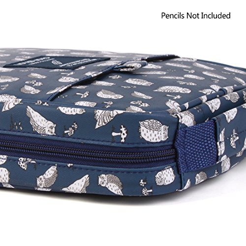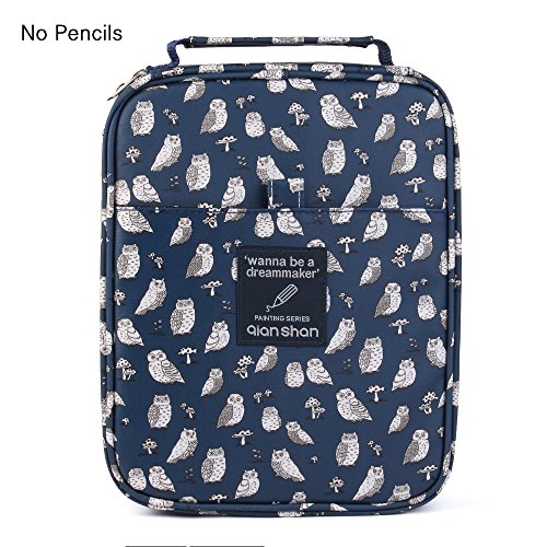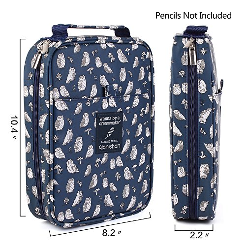 qianshan 100 120 132 144 150 colored Pencils universal Pencil Bag organizer slots holder pen case School Stationery PencilCase Drawing Painting Storage cover hard shell Pouch pencil box blue owl