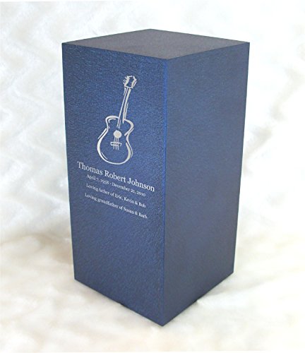 PERSONALIZED Custom Engraved Guitar Cremation Urn Vault by Amaranthine Urns, made in America in the USA, Eaton DL (up to 200 lbs living weight) (Deep Sea Blue)
