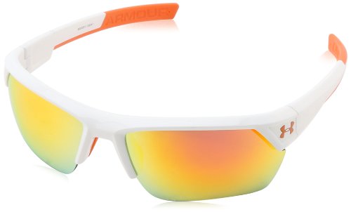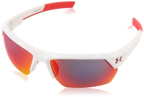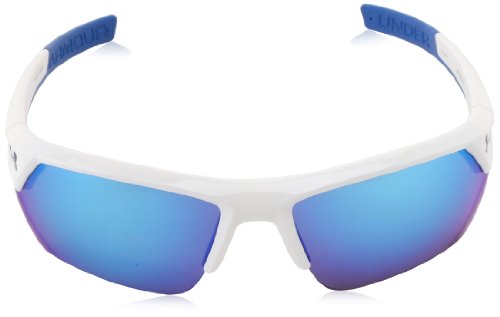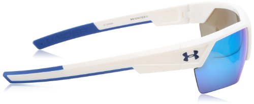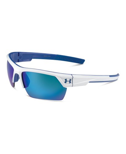 The lightweight and durable under armour igniter sunglasses are have been updated for better performance and more playable comfort. The rimless design offers a wide field of vision through the impact-resistant armour sight lenses. Each lens offers 20 percent enhanced peripheral vision, with consistent performance from edge to edge. Even better, they're stronger than standard polycarbonate lenses so you can love them more and keep them longer. Coated to repel water, resist scratches, and block smudges and stains. They're held by an arm our fusion frame that blends titanium and Grilamid for a light and strong combination. Includes THREE-POINT grips and an adjustable nose pad. Blocks 100% of UVA, UVA, and uvc rays. Comes in shiny white/blue.