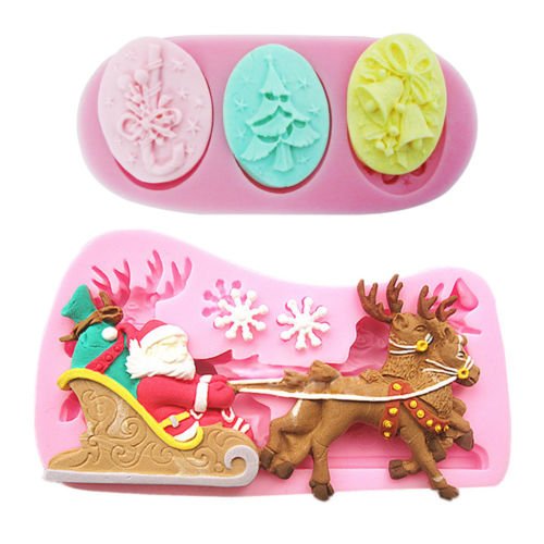 Anyana 2x 3D Xmas Silicone Fondant Chocolate Cake Sugarcraft Decorating Mould cupcake topper decoration mold christmas party