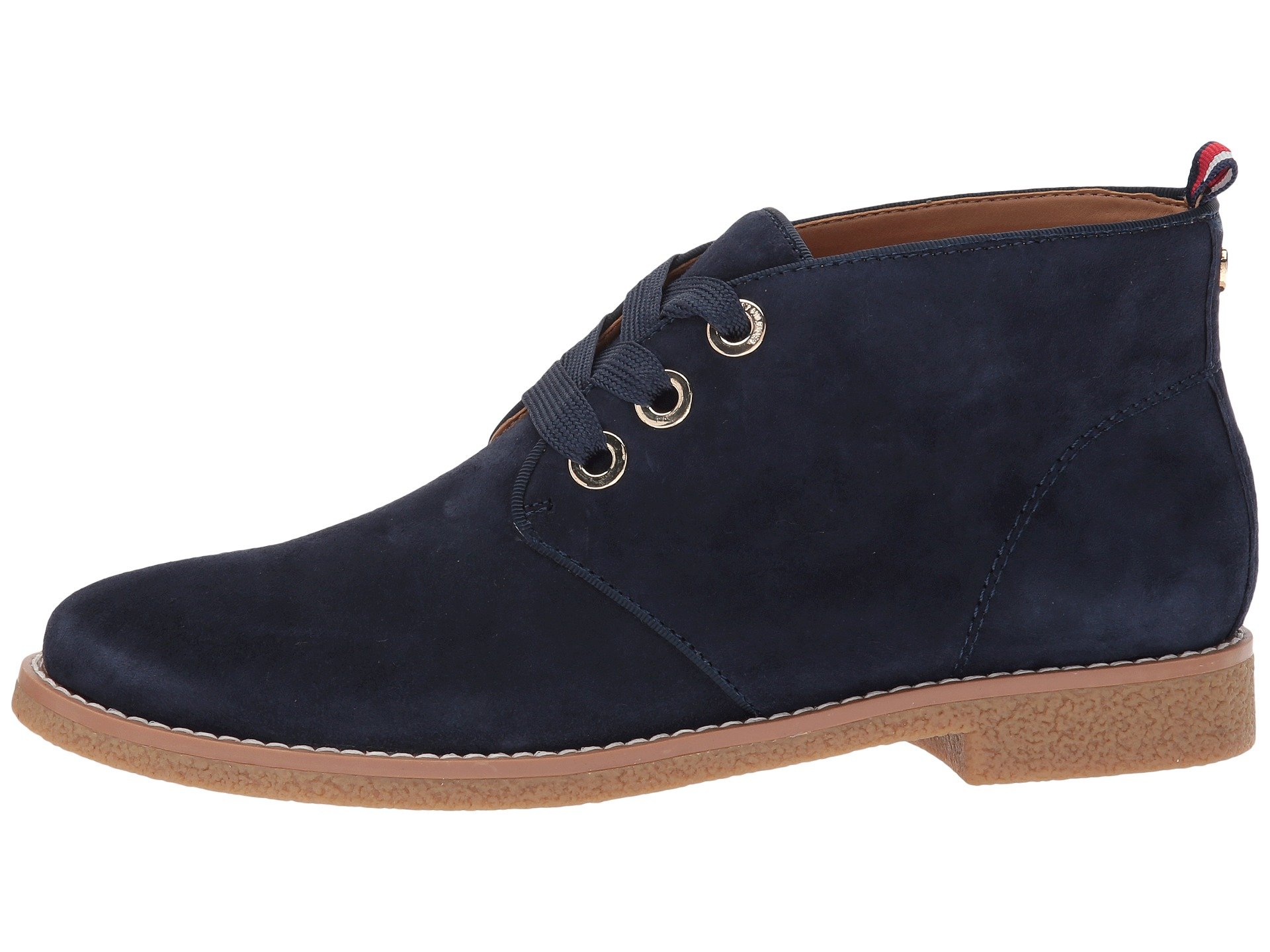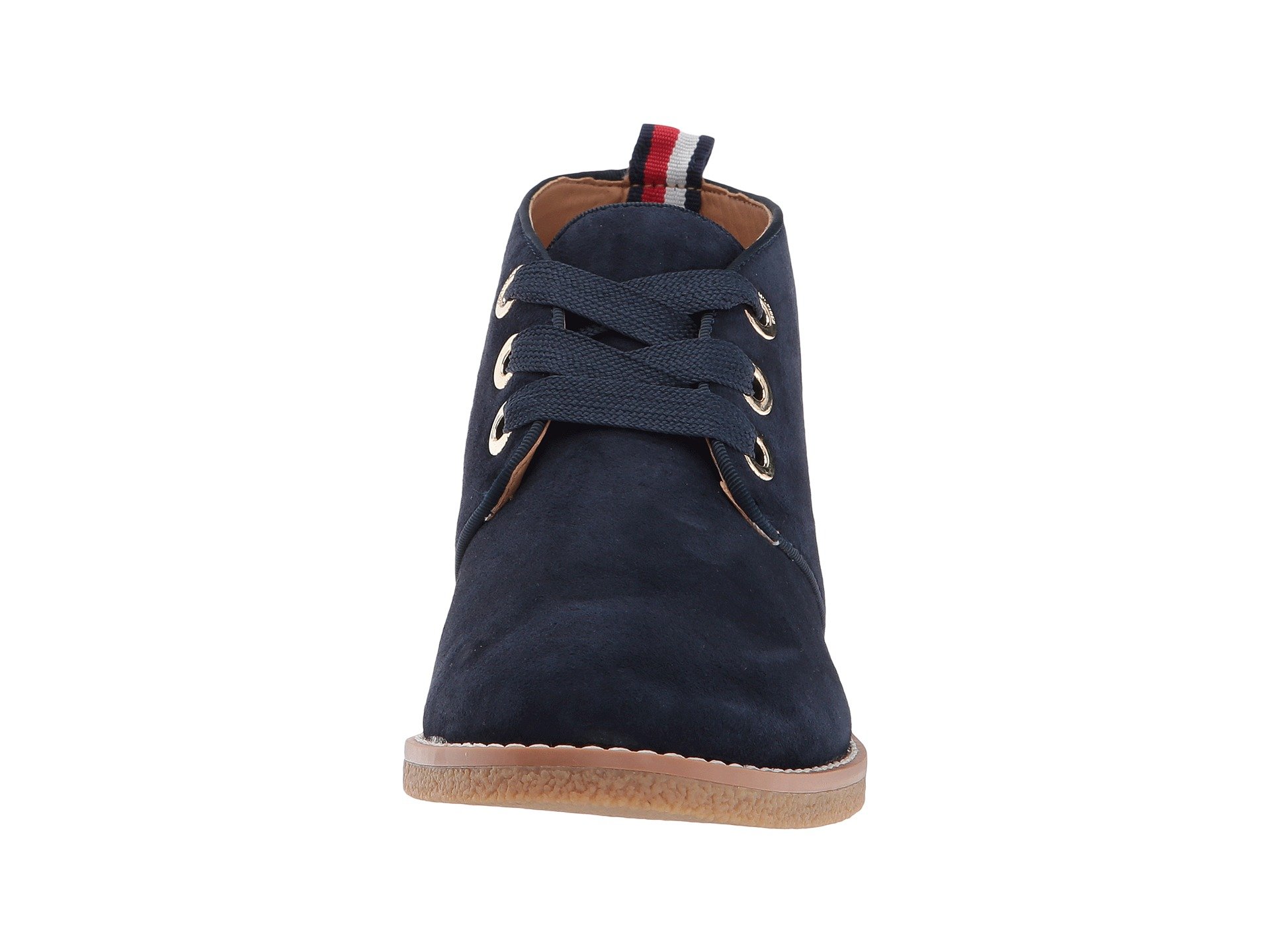 | Product Information SKU: #8929366Find your style groove this season with the Tommy Hilfiger™ Balbina chukka-style boot. Available in a variety of premium uppers.Lace-up closure with iconically designed rear-pull loop.Round-toe silhouette.Polished grommets with logo detailing.Synthetic lining and insole.Lightly-padded footbed. Molded heel.Rubber outsole.Imported. Product measurements were taken using size 7.5, width M. Please note that measurements may vary by size.Weight of footwear is based on a single item, not a pair.Measurements: Heel Height: 1 in Weight: 12 oz |