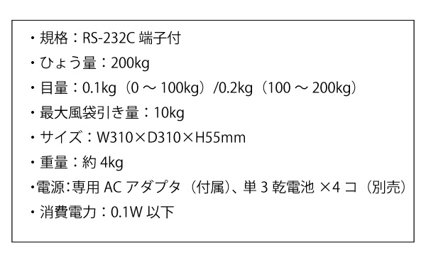 ●最小表示:0~100kg までは0.1kg、100~200kgまでは0.2kg