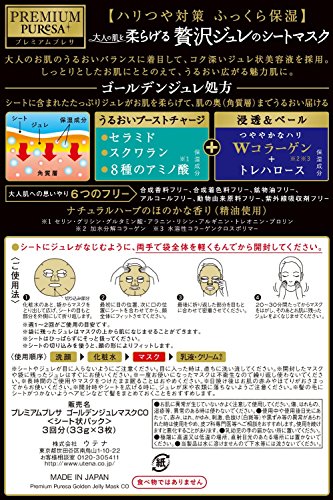 -. Feature : Golden jelly prescription of jelly mask. / The blending two types of collagen (moisturizing),The serum plenty 33g for adults. / Six free prescription,Synthetic fragrances / artificial coloring / mineral oil / alcohol / animal-derived raw materials / ultraviolet absorber additive-free