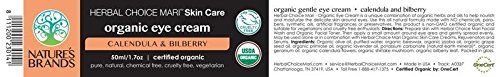 Nature's Brands' Herbal Choice Mari organic eye cream is excellent for all skin types. This certified organic, rejuvenating eye cream helps diminish the appearance of fine lines. The nourishing plant ingredients offer long term youthful looking skin. This does not contain any synthetic fragrance, but has a mild lavender scent that dissipates after application.Feature