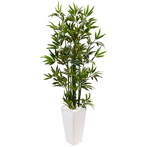 Nearly Natural 4.5’ Bamboo Artificial Tree in White Tower Planter, Green