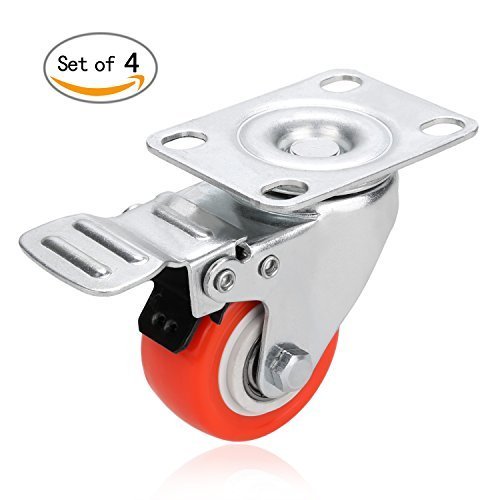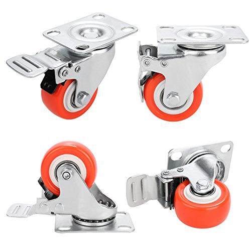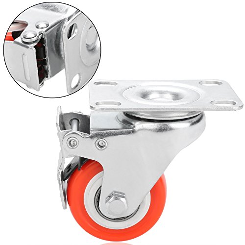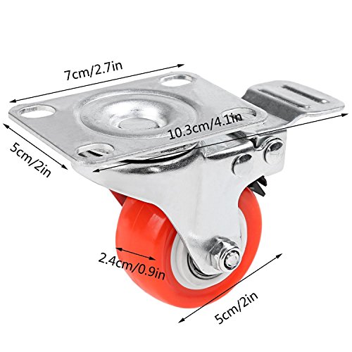 2" Swivel Caster Wheels Rubber Base with Top Plate & Bearing Heavy Duty- Red (Pack of 4)