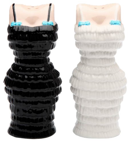 Appletree Design Black and White Cuties Dress Salt and Pepper Set, 3-1/2-Inch