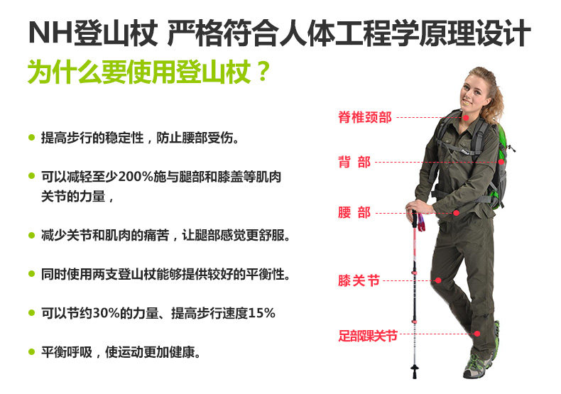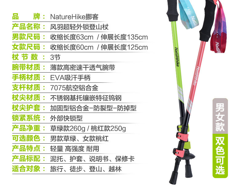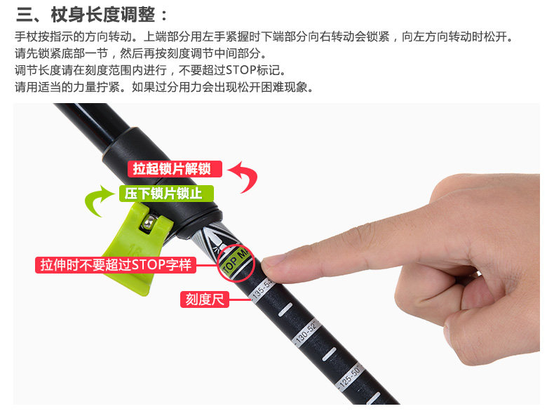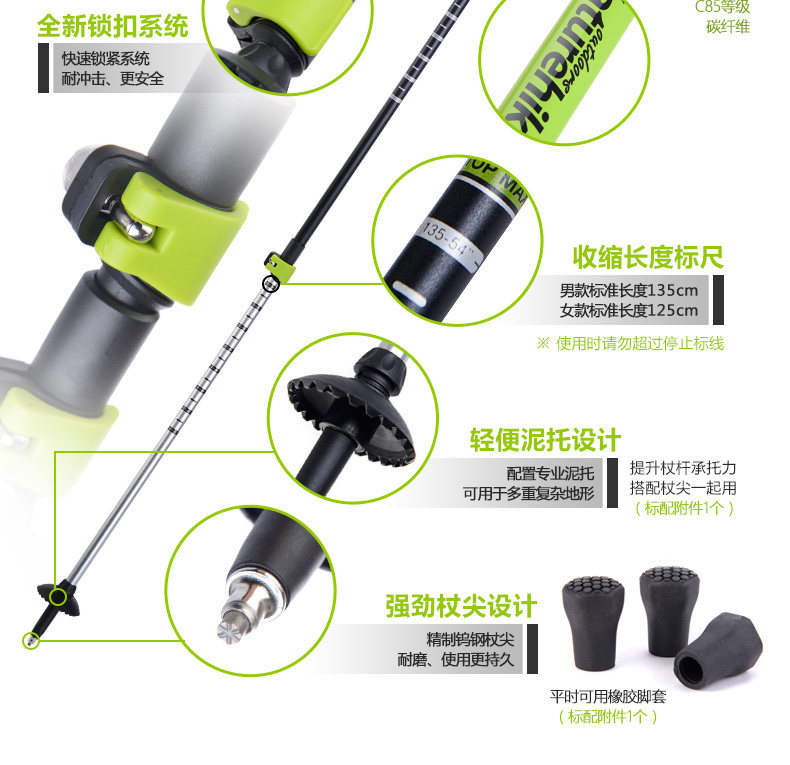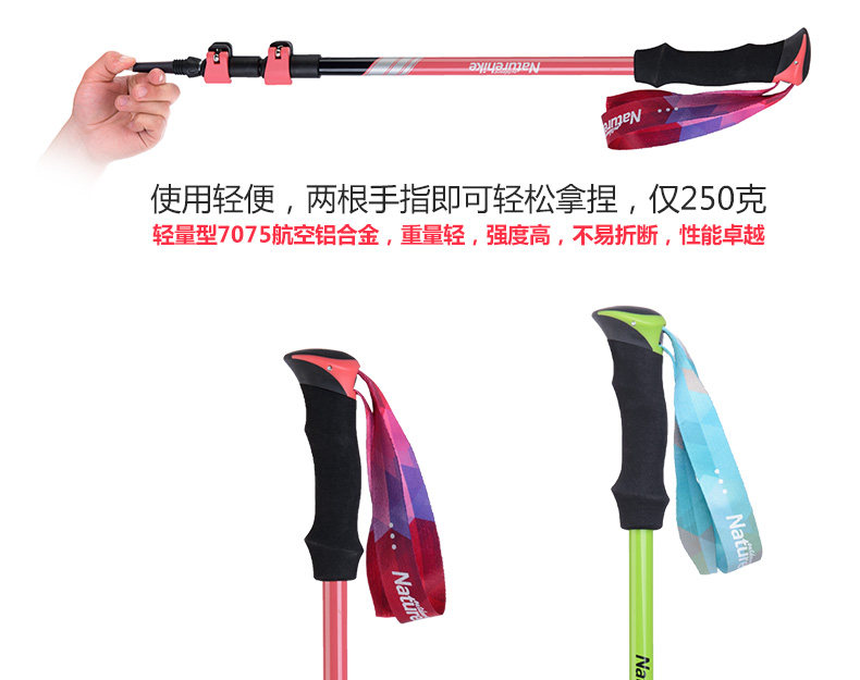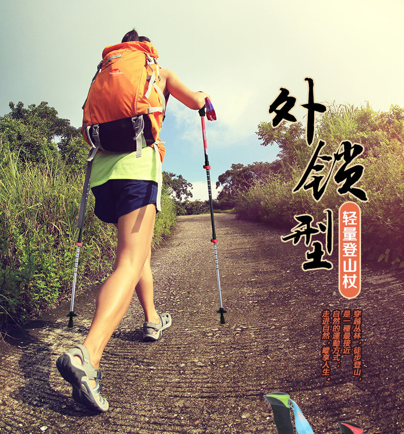 ?户外登山杖男女情侣款超轻外锁三节伸缩徒步手杖铝合金爬山拐杖