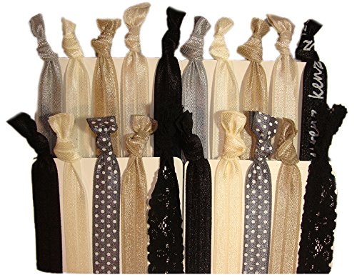 Hair Ties Ponytail Holders - 20 Pack "Evening Lace" Black Tan Blonde Silver No Crease Ouchless Elastic Styling Accessories Pony Tail Elastics Holder Ribbon...