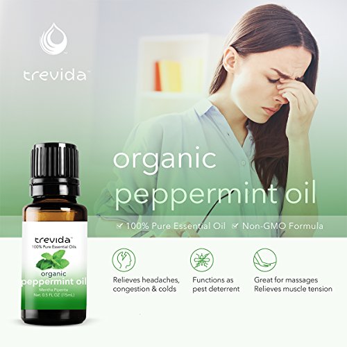 Trevida Certified Organic Peppermint Essential Oil | 15 ml | Repel Mice & Bugs, Aromatherapy, Headache Relief, Dandruff, And Acne.