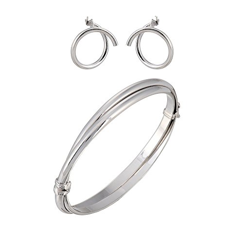 -. Title : G&H Sterling Silver Crossover Bangle Bracelet and Hoop Earrings Set