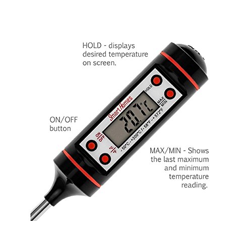 SmartHomes Digital Meat Cooking Thermometer - Ideal Oven Temperature Probe For Food, Grill, BBQ | Extra Bonus Recipes | Auto Shut-off For Maximum Battery Life