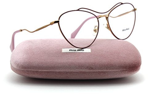 -. Feature : Model: Miu Miu 0MU 53PV / Lens: Demo. / Color: Bordeaux w/Gold Frame UA51O1 . / Original Miu Miu Packaging, Carton Box, Case, and Cleaning Cloth Included. / Gender: Women.