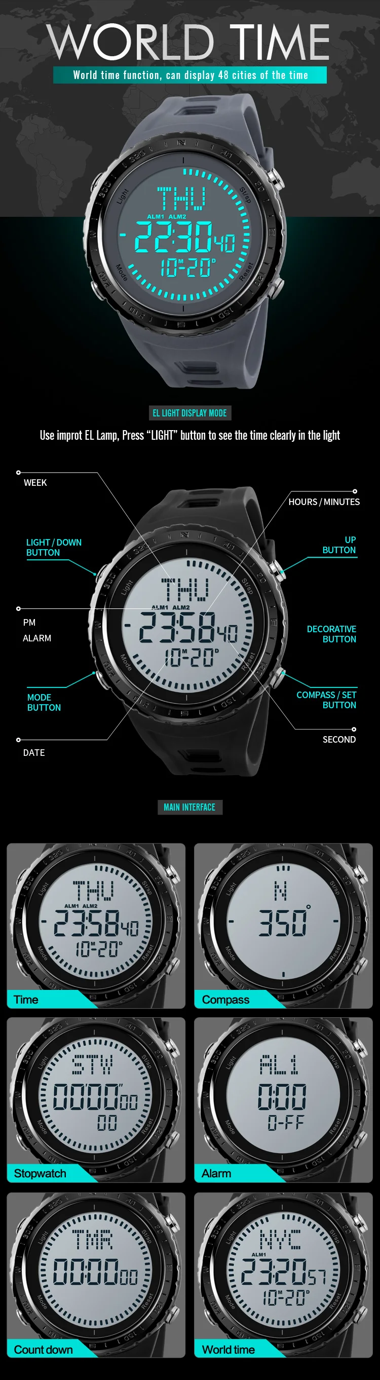 Feature:Water Resistant,Compass,Stop Watch,Back Light,Alarm,Swim