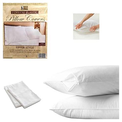 -. Feature : Condition: Brand New, Original Package, Sealed Box. Brand New. / Features: ⦁ Measures: 21" x 27" ⦁ 2 Pillow covers ⦁ Soft plastic material / ⦁ Prevents and blocks dust mites or bed bugs ⦁ Zippered cover ⦁ Hand wash with mild soap or wipe clean / ⦁ Perfect gift ⦁ White color / Package Contents - Accessories Included: 2 Deluxe Plastic Pillow Protectors 21" X 27"