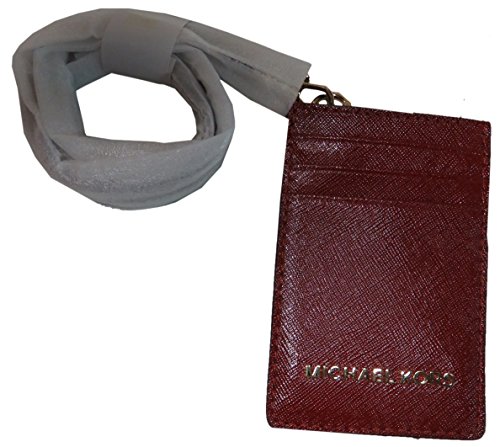 Michael Kors Jet Set Travel Saffiano Leather Lanyard ID Card Case Cherry