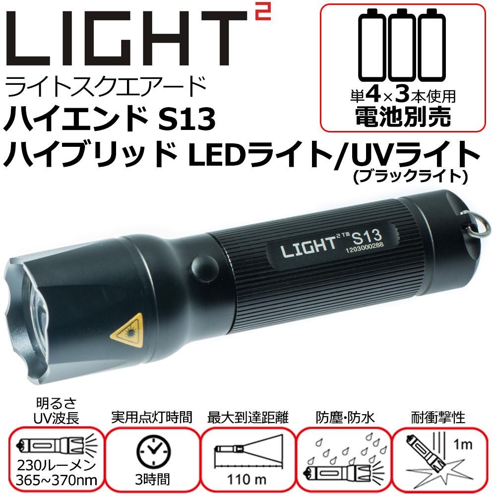 | 仕様 | ●UV波長:365-370nm ●明るさ:230ルーメン(白色光時) ●最大到達距離:110m ●防塵・防水 ●耐衝撃性:高さ1m ●実用点灯時間:3時間 ●電池:単4×3本(別売) ●メーカー保証有(購入日より1年間)※購入日がわかるもの必須 |