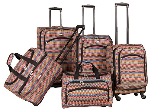 Studio : American Flyer Publisher : American Flyer Binding : Apparel Product Description For over thirty years, American Flyer luggage has been designing baggage that is classic, innovative and fashion forward, while being durable and practical. American Flyer Gold Coast Spinner 5-piece luggage set includes 3 Uprights (large/medium/carry-on) each with 4 spinner wheels, locking telescoping handles, expandability by 2-inches, top and side carry handles, multiple interior and exterior pockets, sturdy frame and light weight construction. This set also includes a Carry-on Wheeled Duffel that has a recessed telescoping handle along with a Personal Bag which has a carry handle and shoulder strap. Product comes with a 2 year warranty. Wheel 2 inches is not included in the actual body dimension 0