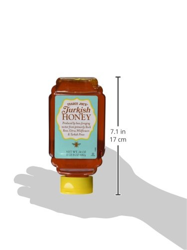 - Feature : Trader Joe's Turkish Honey / Produced by bees foraging nectar from primarily Rock Rose, Citrus, Wildflowers & Turkish Pines / Net Wt. 24 oz (1 lb 8 oz) 680 g
