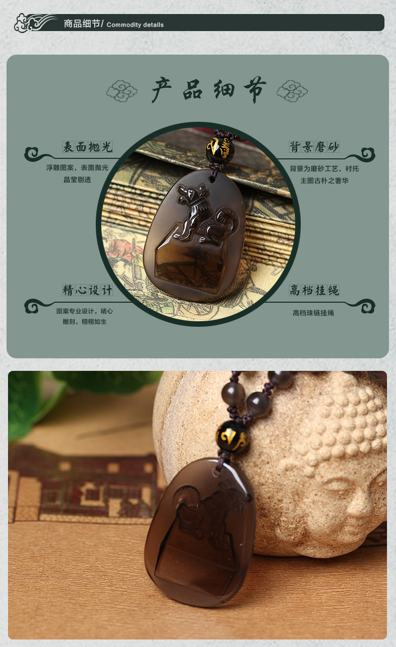 黑曜石吊坠护身符生肖属狗化太岁吉祥物男女