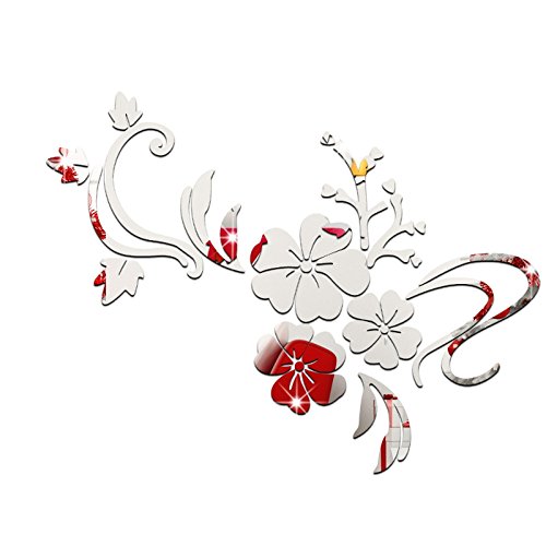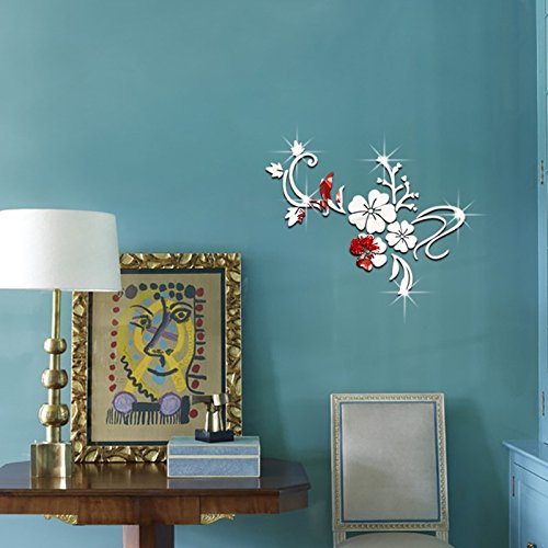 Katoot@ Acrylic Reflective Mirror Stickers Flowers Leaf Wall Stickers Home DIY Decoration Vinyl Art Decals Murals 60x80cm Gold Silver (Silver)