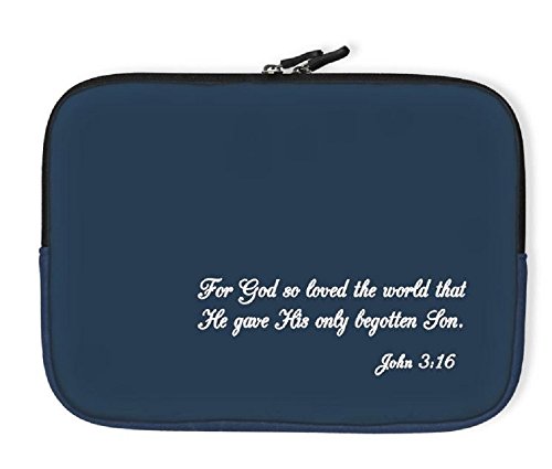 Product Description Easily carry your Bible Study and Church essentials in these fully padded neoprene cases. Our John 3:16 Church Case can accommodate items up to 11" in height. Made of neoprene Case is 11" wide 0