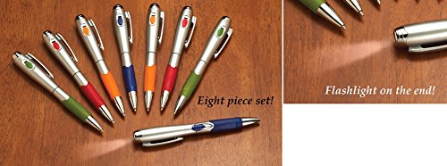-. Feature : Set includes 8 smooth-writing black-ink pens that feature a flashlight on the end / Perfect to use as a book light, to find your keys in your purse, to read a menu, or anytime you need a little extra light / Each includes 3 button cell batteries; On/off switch; Made from plastic / Each measure 5 1/2"L / Shop with confidence! For over 50 years, Collections Etc has been bringing unique, whimsical, inspirational, and home solution products to customers. All Collections Etc products come with a 60 day, easy return policy and 100% satisfaction guarantee