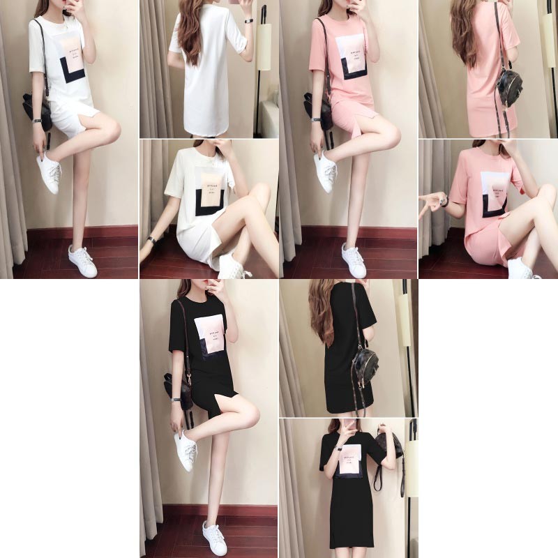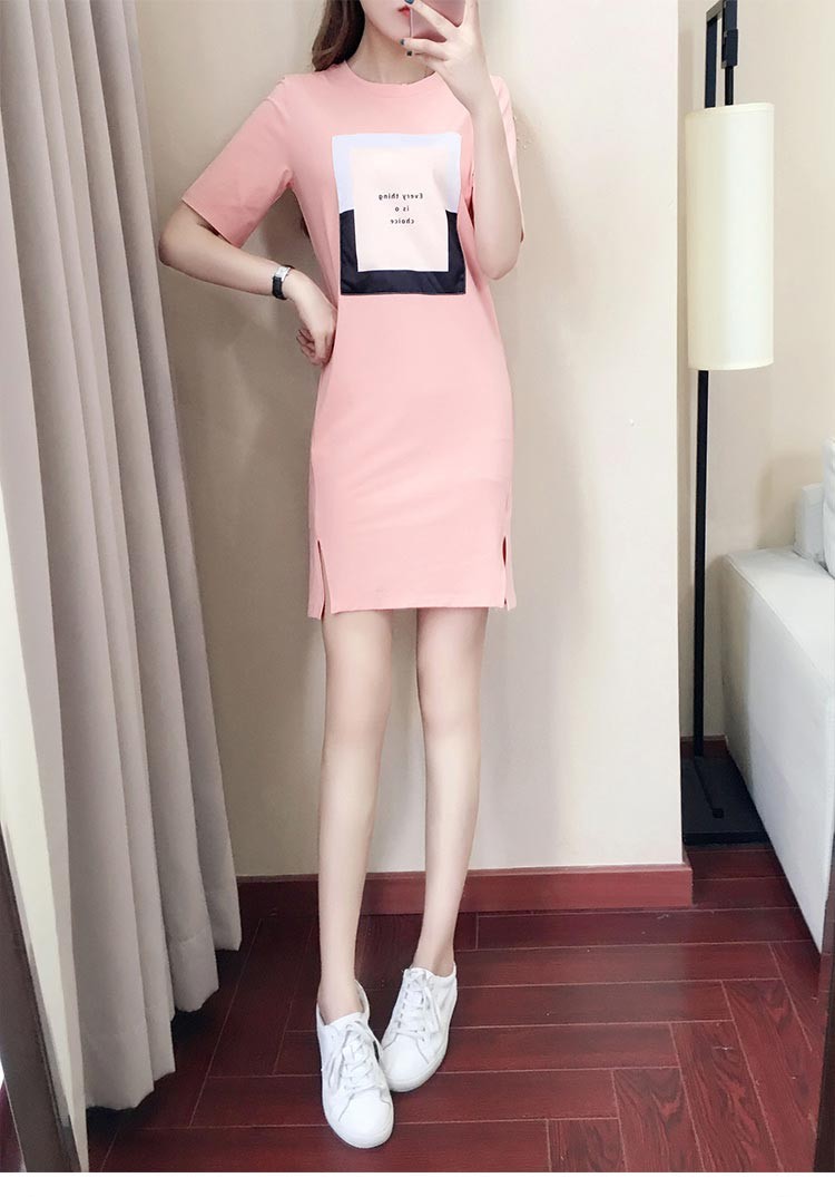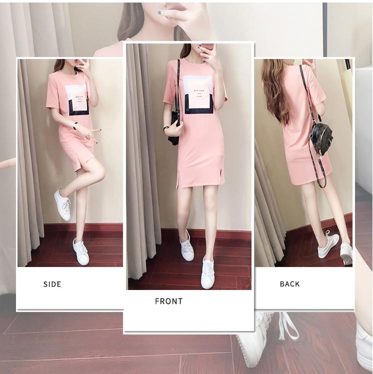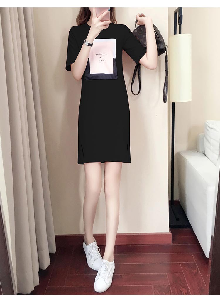 胸にカラーブロックとロゴ入りの半袖ショート丈のTワンピース♪