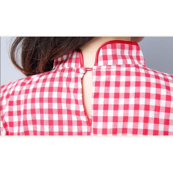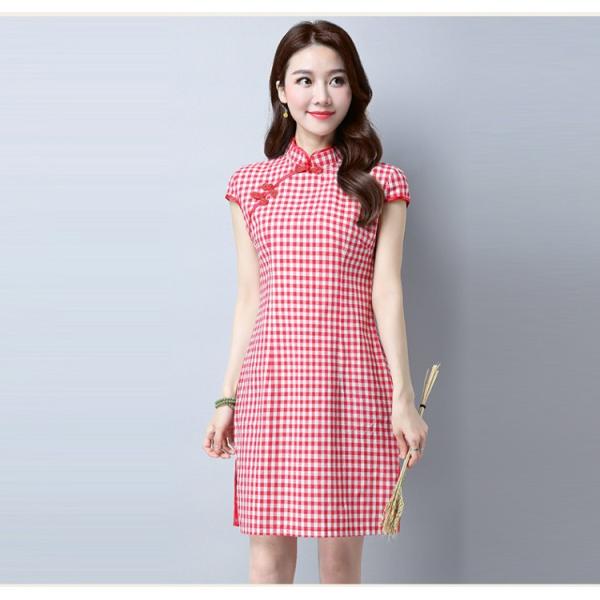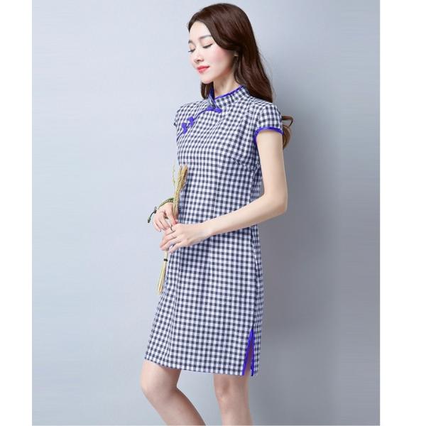 レトロオリエンタルな雰囲気漂うチェックのワンピース。