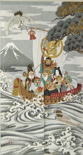 Noren Japanese Doorway Curtain 7 Lucky Gods Treasure Ship 85x150cm