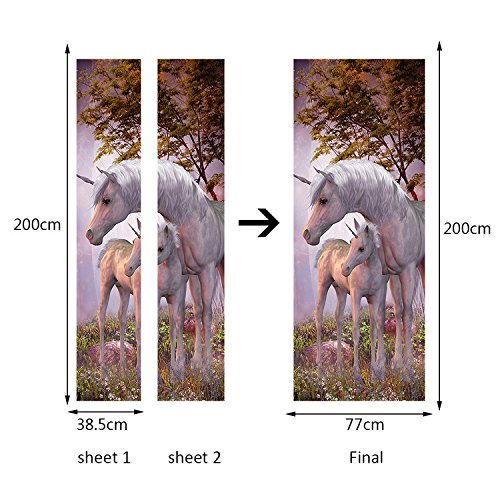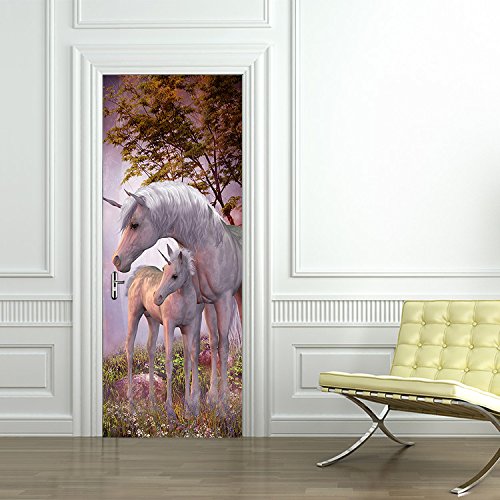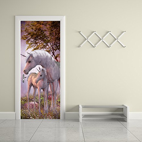 CaseFan 3d Door Wallpaper Murals Wall Stickers--Unicorn for Home Decoration Self-adhesive Vinyl Removable Retro Art Door Decals 30.3x78.7"