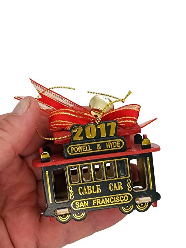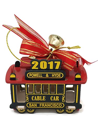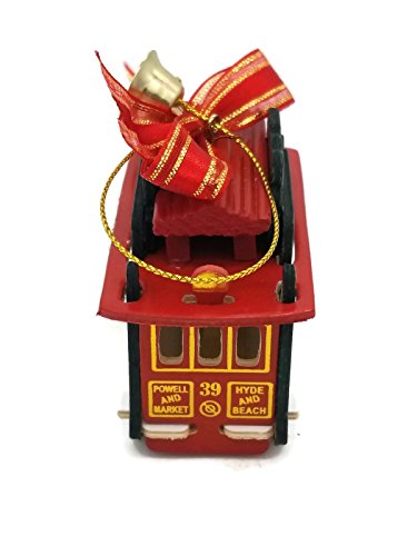 CM San Francisco Christmas Ornament 2017 Christmas Ornament San Francisco Cable Car 3" Red Green Wood LIMITED EDITION QUANTITIES ORDER NOW With Exclusive CA Bear Manget