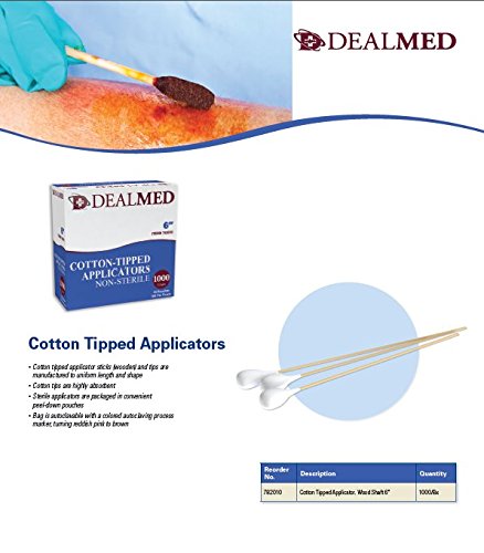 Dealmed Cotton Tipped Applicator with Wooden Shaft, 6 inches, 1000 Per Box