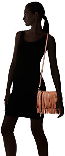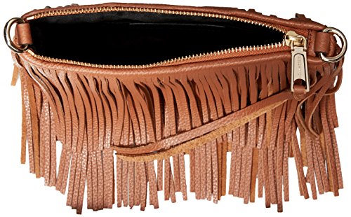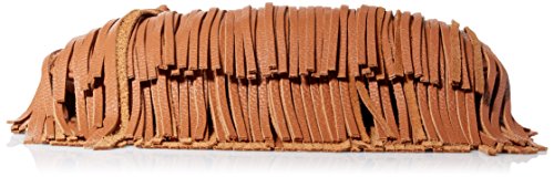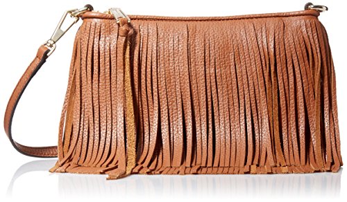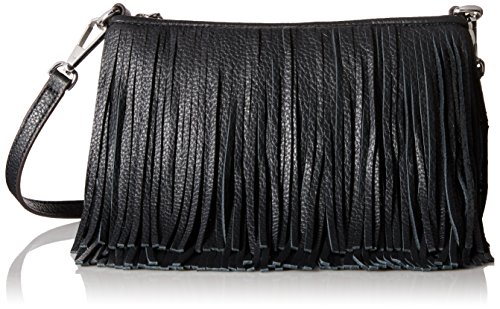 Small zip-top pouch handbag featuring two rows of front fringe and one row at back