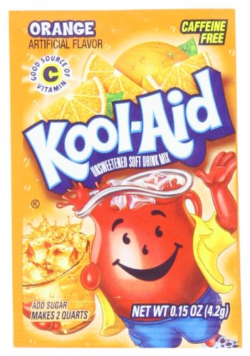 Kool-Aid Orange Unsweetened Soft Drink Mix, 0.15-Ounce Packets (Pack of 96)
