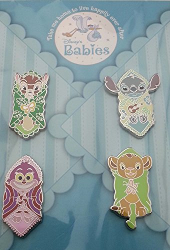 - Four pin booster set featuring Disney babies wrapped in blankets. Set includes: Bambi, Stitch, Pin Cheshire Cat, and Simba.