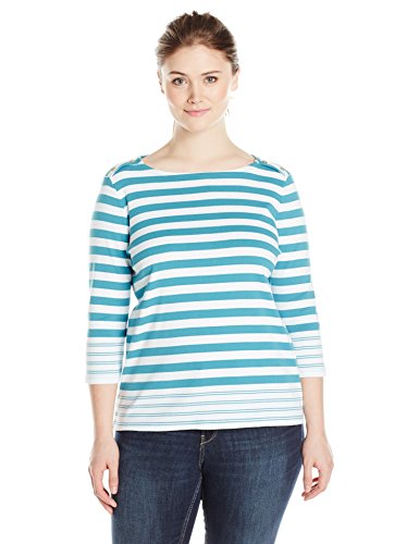 Pendleton Women's Plus-Size Corina Stripe Rib Tee, Indigo/White, 3X