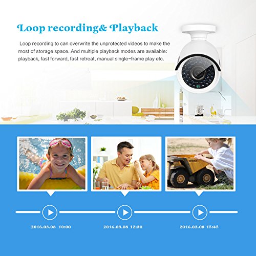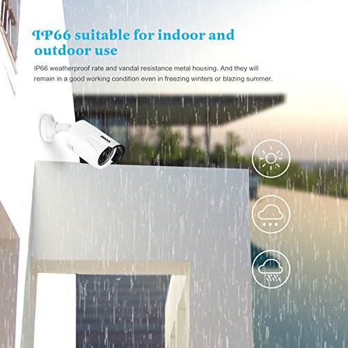 -. Feature : This new POE camera is equipped with only one network cable to both provide power supply and transmit video signals, which literally simplified the installation and reduced costs / It is totally digital 1080P high definition with advanced image processing technology which brings your video back to life / With the build-in 36 IR LEDs, the camera can provide you a spectacular black and white night vision up to 100ft in exceptional clarify / With the motion detection function, the camera is able to detect any movements happened in your house and record it / The POE (Power over Ethernet) cameras have a weatherproof rate at IP 66, suitable for indoor and outdoor use