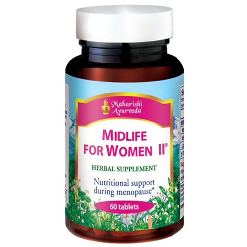 -. Binding : Health and Beauty -. Brand : Maharishi Ayurveda -. EAN : 0010415009451 -. Feature : balance emotions / regulates body temperature (hot flashes) / support circulation / nourish the uterus & maintain moisture balance / powerful formula with amla & myrrh -. IsAdultProduct : 0 -. Label : Maharishi Ayurveda -. LegalDisclaimer : The statements listed here have not been evaluated by the Food and Drug Administration. The products and information are not intended to diagnose, treat, cure or prevent any disease. All information is provided for educational purposes only. -. Manufacturer : Maharishi Ayurveda -. PackageQuantity : 1 -. ProductGroup : Health and Beauty -. ProductTypeName : HEALTH_PERSONAL_CARE -. Publisher : Maharishi Ayurveda -. Size : 500mg 60 Herbal Tablets -. Studio : Maharishi Ayurveda -. Title : Midlife for Women II, 500mg, 60 Herbal Tablets -. UPC : 010415009451