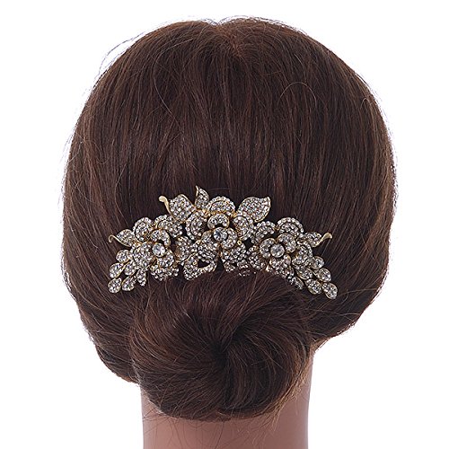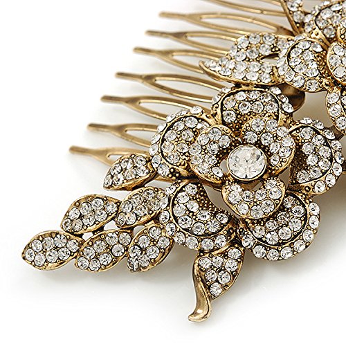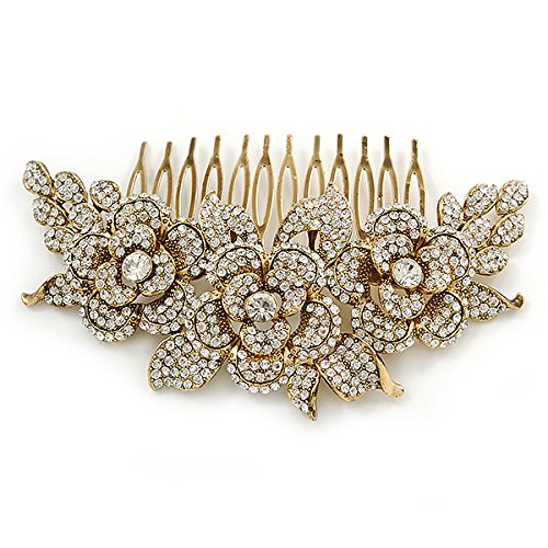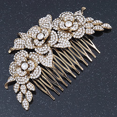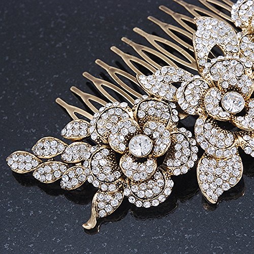 Oversized Bridal/ Wedding/ Prom/ Party Gold Plated Clear Crystal Triple Rose Floral Hair Comb - 110mm