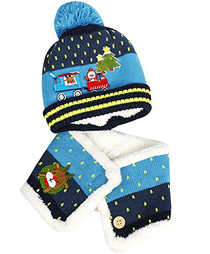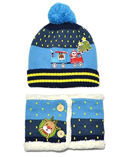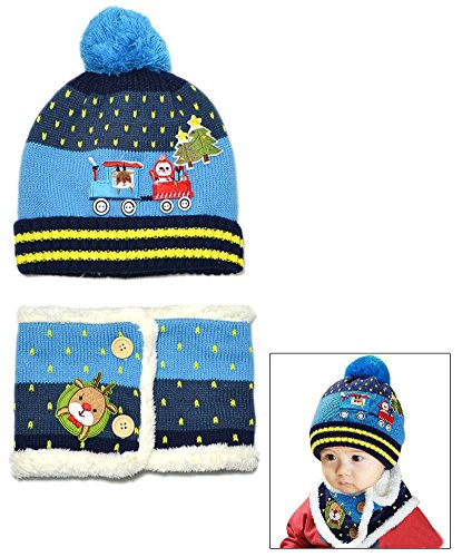 -. Binding : Apparel -. Brand : JAVOedge -. Department : baby-boys -. Feature : Matching hat and shawl/scarf duo features an adorable pattern of reindeer's, snowmen, presents, and Christmas trees / Fits toddlers and babies from ages 1-4 years old, Hat circumference: 18.5�- 20.5�, Scarf size: 42.5 x4.7� / Material: Cotton, polyester, wool, great for keeping your baby�s hat, neck, and shoulders warm / Colorful hat has a pom-pom and features buttons as wheels on the train pattern that is sewed on to it, matching scarf has a matching pattern / Packaged with reusable drawstring bag, Money-back satisfaction guarantee -. Label : JAVOedge -. Manufacturer : JAVOedge -. MPN : SIZECLR-00349 -. PackageQuantity : 1 -. PartNumber : SIZECLR-00349 -. ProductGroup : Apparel -. ProductTypeName : HAT -. Publisher : JAVOedge -. Studio : JAVOedge -. Title : Kids and Toddler Cute Train and Reindeer Matching Neck Scarf and Hat Set Fits 1-4 Years Old